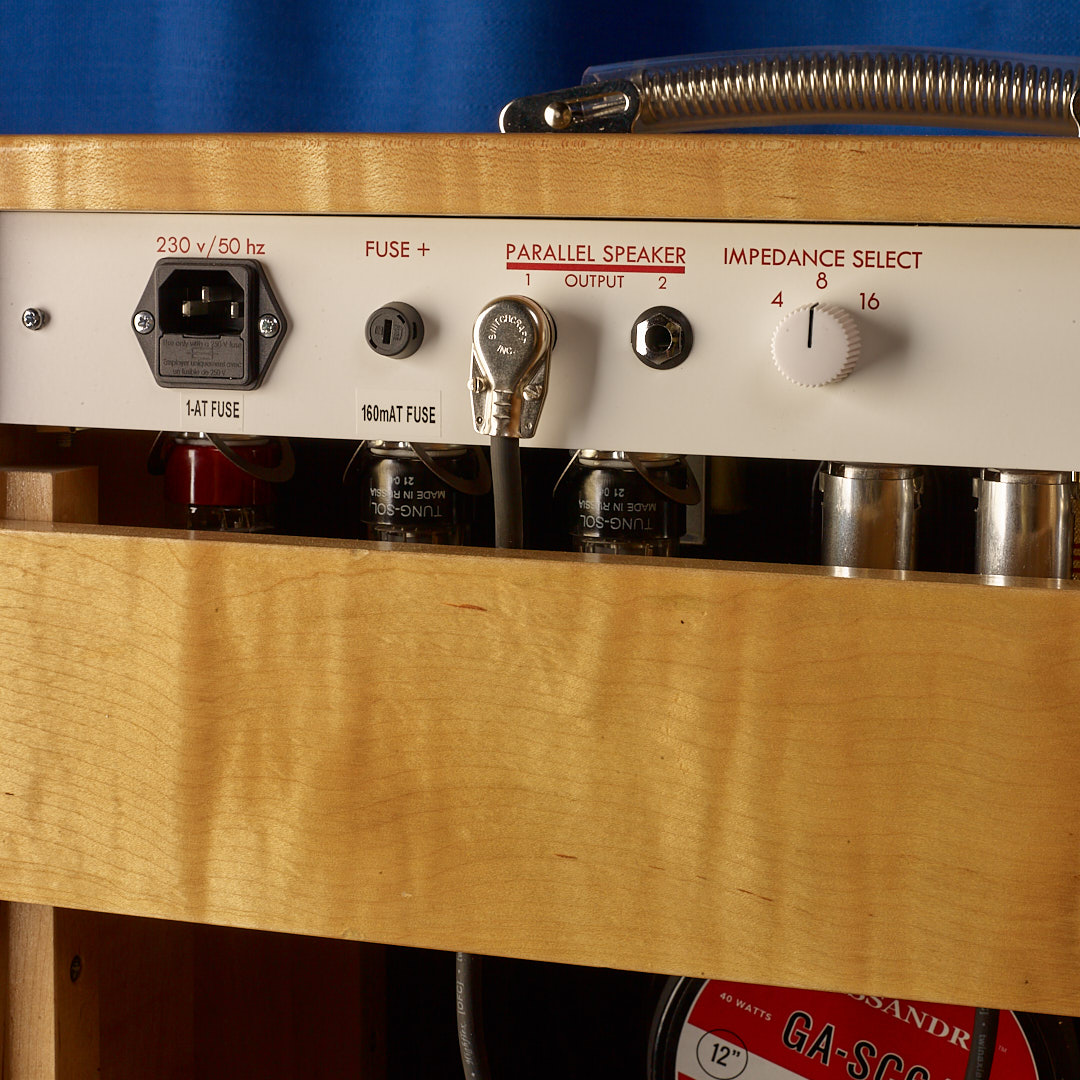 SPECIFICATIONS: 20W PUSH-PULL Combo | PreAmp Tubes: 3 x 12AX7, 1 x 12 AT7-ECC81 | Power Tubes: 2 x 6V6 | Diode Rectifier | Tube Reverb Circuit with Mix Control | Front Controls: Gain-Treble-Middle-Bass-Master | 2 Parallel Speaker Outputs with 4-8-16ohm Selector | 1 x 10" Celestion Gold Alnico Speaker | CNC Aluminium Chassis | Point to Point HandWired Circuit with High Grade Components